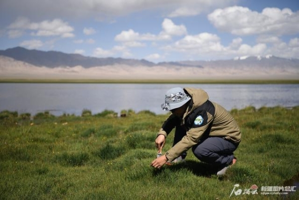 科考團(tuán)隊(duì)負(fù)責(zé)人張發(fā)起正在采集植物標(biāo)本。中國科學(xué)院西北高原生物研究所提供