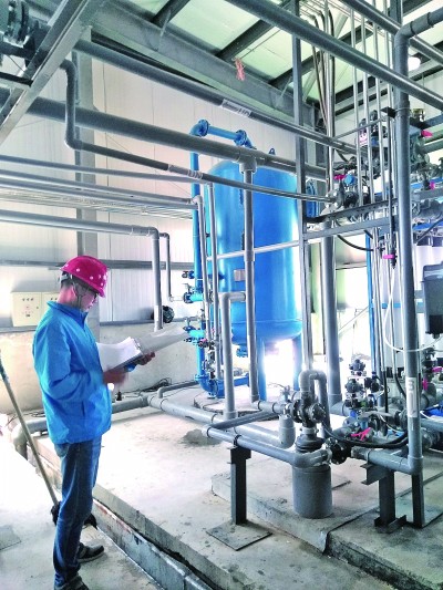 二〇一七年夏,趙有璟于一里坪鹽湖記錄設(shè)備試運(yùn)行參數(shù)。光明圖片