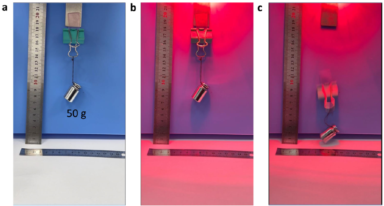 此外,在機(jī)器人領(lǐng)域,這種材料有望成為“輕量化黏附足部”的理想選擇?!败涹w機(jī)器人需要在垂直甚至倒掛的表面快速移動,傳統(tǒng)電磁或真空吸附系統(tǒng)又重又耗能。而我們的材料僅需一束光,就能實現(xiàn)高效攀爬。”周峰補充道。