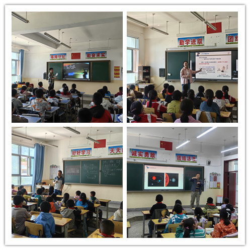 與會人員為王泉村鷺島小學(xué)孩子們帶來了系列科普報(bào)告,送學(xué)下鄉(xiāng),將習(xí)近平總書記智志雙扶要求落在具體關(guān)愛舉措中。材料輻照效應(yīng)室副研究員、九三學(xué)社社員李宗臻以《名偵探柯南與科學(xué)探秘之返老還童》為題,通過動漫柯南中的故事情節(jié),引入了細(xì)胞凋亡、提純技術(shù)、化學(xué)反應(yīng)等科學(xué)知識,生動地表達(dá)了科學(xué)源于生活,科學(xué)無處不在。原子分子結(jié)構(gòu)與動力學(xué)室副研究員、九三學(xué)社社員張瑞田以《絢麗的天文觀測和有趣的原子世界》為題, 告訴同學(xué)們天文望遠(yuǎn)鏡為我們了解宇宙打開了一扇窗,萬物皆由原子組成,天文觀測主要是光譜,而加速器原子物理實(shí)驗(yàn)為我們揭秘絢麗的天文現(xiàn)象搭建了一座橋梁。核電子學(xué)室高級工程師、九三學(xué)社社員蒲天磊作了題為《神奇的電——電的故事與安全用電》報(bào)告, 講述了人類從發(fā)現(xiàn)電到應(yīng)用電的一系列故事,科普了相關(guān)原理,進(jìn)行了安全用電教學(xué)。所級公共平臺高級實(shí)驗(yàn)師、九三學(xué)社社員李小剛則通過《世界的大與小》,讓小朋友們認(rèn)識了宇宙的浩瀚無邊和微觀世界的微不可見。豐富廣泛的主題,深入淺出的講解,讓同學(xué)們聽得入神、受益良多。