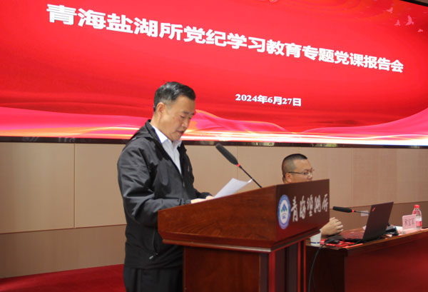 為深入學(xué)習(xí)貫徹習(xí)近平新時代中國特色社會主義思想和黨的二十大精神,進(jìn)一步學(xué)習(xí)貫徹習(xí)近平總書記關(guān)于黨紀(jì)學(xué)習(xí)教育重要講話和重要指示批示精神以及習(xí)近平總書記6月18日視察青海時的重要講話精神,引導(dǎo)全所黨員干部堅定理想信念,強化黨性修養(yǎng),扎實推動黨紀(jì)學(xué)習(xí)教育走深走實,6月26日至27日,青海鹽湖所黨委根據(jù)黨紀(jì)學(xué)習(xí)教育工作安排,在處級及以上黨員領(lǐng)導(dǎo)干部及黨支部書記培訓(xùn)班過程中舉辦全所黨員黨紀(jì)學(xué)習(xí)教育“七一”專題黨課報告會。報告會邀請中共青海省委黨校哲學(xué)教研部主任張建、中共青海省委黨校黨史黨建教研部副教授和寶軍講授專題黨課。所黨委委員、紀(jì)委委員、中層干部、黨支部委員、職工黨員和研究生黨員參會。會議由黨委書記、黨紀(jì)學(xué)習(xí)教育工作小組組長王永晏主持。??