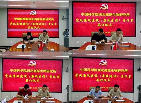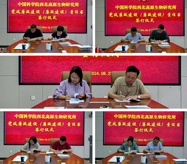 會(huì)上,西北高原所黨委書記、所長陳世龍作為“第一責(zé)任人”與新任黨委副書記王萍、紀(jì)委書記馬忠漢、副所長魏立新、副所長楊其恩分別簽訂《黨風(fēng)廉政建設(shè)(廉政建設(shè))責(zé)任書》。隨后,所領(lǐng)導(dǎo)與分管業(yè)務(wù)部門負(fù)責(zé)人逐一簽訂責(zé)任書,進(jìn)一步明確和壓實(shí)全面從嚴(yán)治黨主體責(zé)任、監(jiān)督責(zé)任。