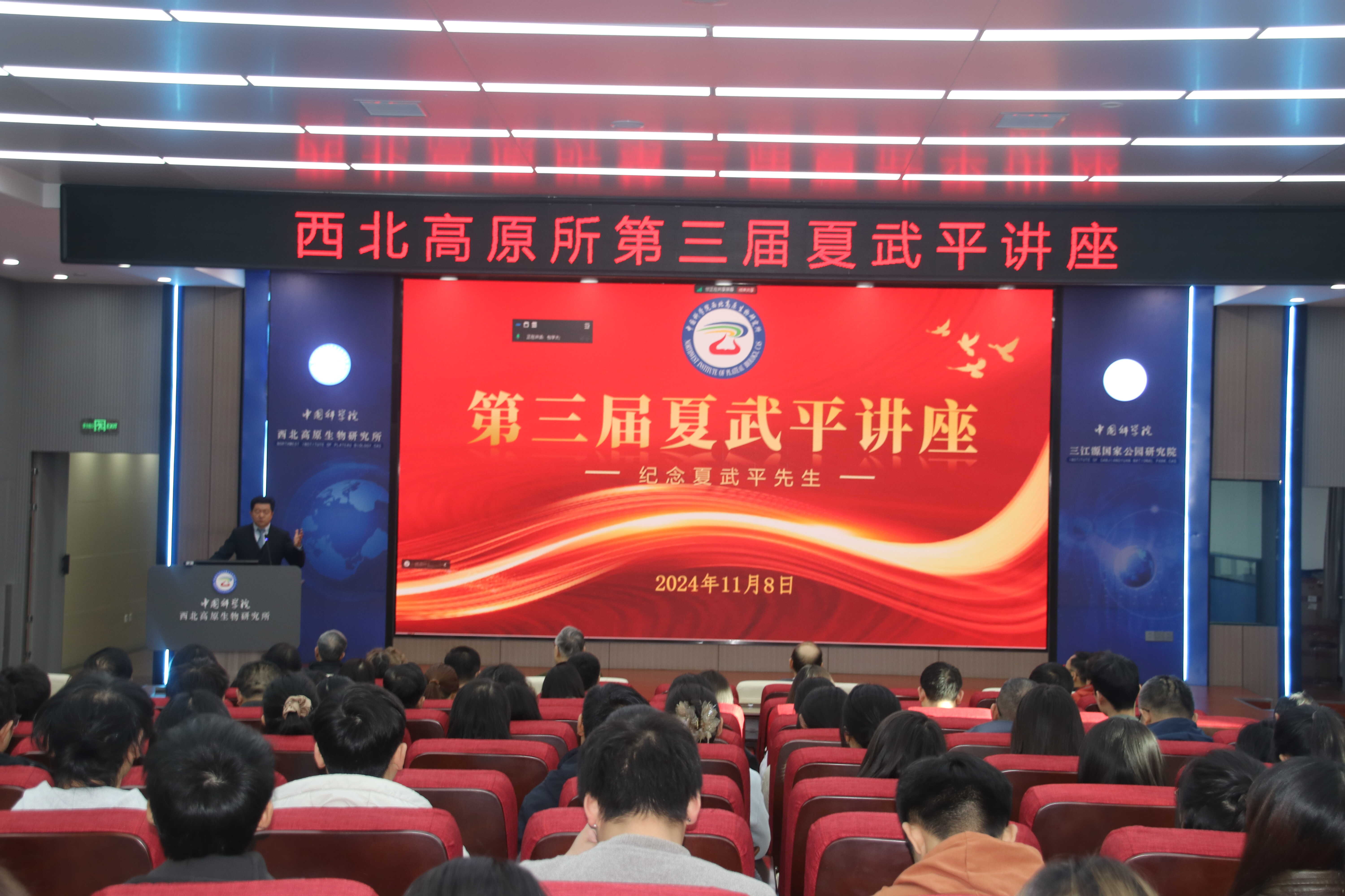 正值中國(guó)科學(xué)院成立75周年之際,為更好弘揚(yáng)科學(xué)家精神,激勵(lì)全所職工勇于創(chuàng)新、敢于擔(dān)當(dāng),不斷攀登科技高峰,11月8日上午,中國(guó)科學(xué)院西北高原生物研究所舉辦了“夏武平雕像揭幕儀式暨第三屆夏武平講座”活動(dòng)。西北高原所所長(zhǎng)、黨委書(shū)記陳世龍,黨委副書(shū)記王萍,副所長(zhǎng)魏立新、楊其恩和紀(jì)委書(shū)記馬忠漢出席了活動(dòng),夏武平先生之子夏經(jīng)林,中國(guó)科學(xué)院動(dòng)物研究所研究員蔣志剛和西北高原所全體職工、研究生應(yīng)邀參加活動(dòng)。此次揭幕儀式由王萍主持,陳世龍致辭。
