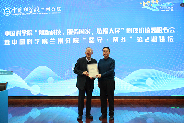 11月29日,中國(guó)科學(xué)院蘭州化學(xué)物理研究所承辦了中國(guó)科學(xué)院“創(chuàng)新科技、服務(wù)國(guó)家、造福人民”科技價(jià)值觀報(bào)告會(huì)暨中國(guó)科學(xué)院蘭州分院“堅(jiān)守·奮斗”第2期講壇。蘭州分院系統(tǒng)各單位領(lǐng)導(dǎo)班子成員、黨委委員、紀(jì)委委員、中層干部、黨支部書(shū)記、科研管理骨干、研究生代表等350余人參加報(bào)告會(huì)。報(bào)告會(huì)由蘭州化物所黨委書(shū)記王齊華主持?!?/span>