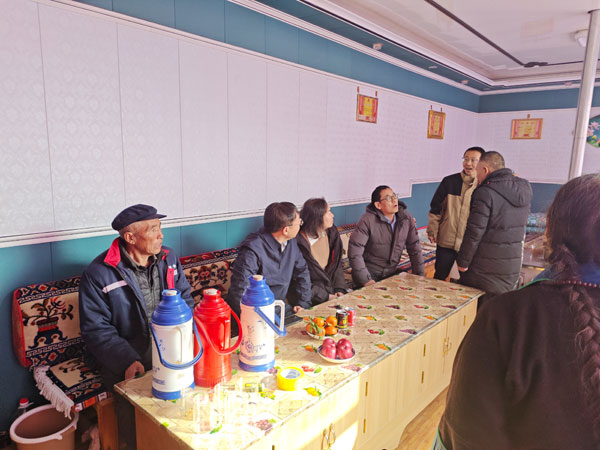 隨后慰問組抵達日扎村,為全村每一戶村民發(fā)放慰問品,并實地走訪查看村民災后重建和避險搬遷情況,全面了解災民搬遷后的生活情況,同時為村民送上節(jié)日的祝福,希望大家把日子過得紅紅火火。