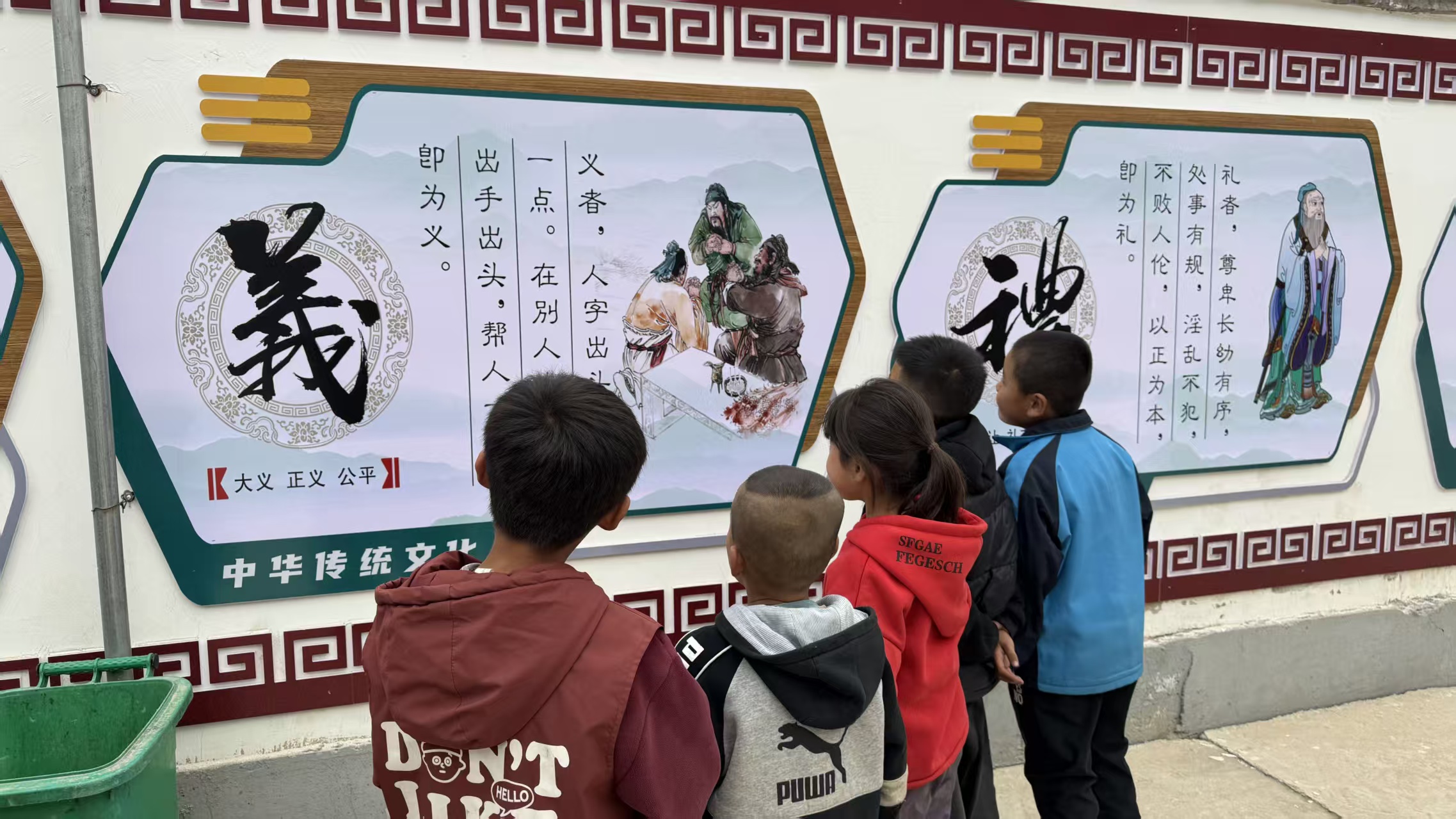 文化墻分多個版塊,分門別類,圖文并茂,從黨和國家教育方針政策介紹,到社會主義核心價值觀宣講,再到科學家精神、國學經(jīng)典、勸學寓言故事以及近代物理所幫扶工作紀實及活動掠影展示等,涉獵廣泛,內(nèi)容豐富,較好地發(fā)揮了文化墻集中展示、宣傳教育、價值引領等作用,為孩子們開啟了一扇以文化人窗口,搭建了一方交流互促平臺。