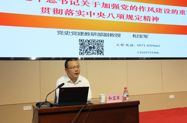 會議首先邀請青海省委黨校和寶軍副教授作題為《深入學習習近平總書記關于加強黨的作風建設的重要論述 貫徹落實中央八項規(guī)定精神》的專題黨課報告。報告強調要充分認識深入貫徹中央八項規(guī)定精神學習教育的重大意義,深刻領悟把握中央八項規(guī)定精神的核心要義與實踐要求,扎實推進深入貫徹中央八項規(guī)定精神學習教育走深、走實。報告主題鮮明,重點突出,對全所黨員干部深入貫徹落實中央八項規(guī)定精神具有重要的指導意義。