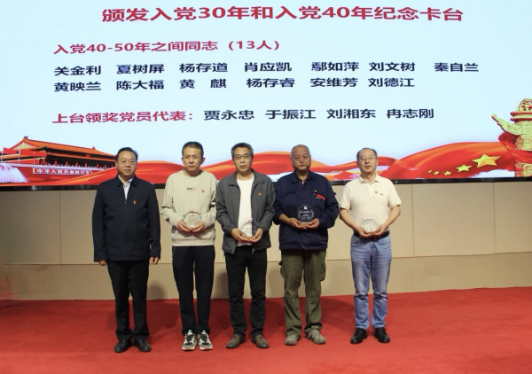 會議宣讀了“光榮在黨50年”紀念章獲得者名單,所黨委委托西安二部黨支部開展紀念章頒發(fā)活動。會議頒發(fā)了入黨30年和入黨40年紀念卡臺,全所28名在冊黨員獲得入黨30年紀念卡臺,13名在冊黨員獲得入黨40年紀念卡臺。通過頒發(fā)活動激勵全所黨員同志進一步強化黨員身份認同,時刻牢記入黨初心使命,永葆先進本色,在新時代新征程上接續(xù)奮斗,再現新擔當、新作為。
