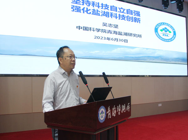 所長吳志堅作了以《堅持科技自立自強,強化鹽湖科技創(chuàng)新》為題的黨課報告。報告從習近平總書記關于科技自立自強的重要論述、習近平總書記關于鹽湖保護利用和鹽湖產(chǎn)業(yè)發(fā)展的重要指示、強化鹽湖科技創(chuàng)新三個方面闡述了學習貫徹習近平新時代中國特色社會主義思想,特別是關于科技創(chuàng)新的系列重要論述對于鹽湖科技創(chuàng)新工作和鹽湖產(chǎn)業(yè)高質量發(fā)展的重要指導意義。要求全所黨員干部及研究生要深感新時代責任使命擔當,進一步聚焦主責主業(yè),弘揚科學家精神,傳承和發(fā)揚鹽湖精神,以實際行動推動鹽湖國重建設的各項工作,扎實推進鹽湖科技創(chuàng)新高質量發(fā)展。?