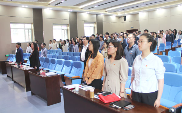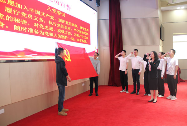 會議舉行了新黨員宣誓儀式。面向鮮紅的黨旗,副所長王建萍帶領新黨員莊嚴宣誓,在場全體黨員重溫入黨誓詞。?