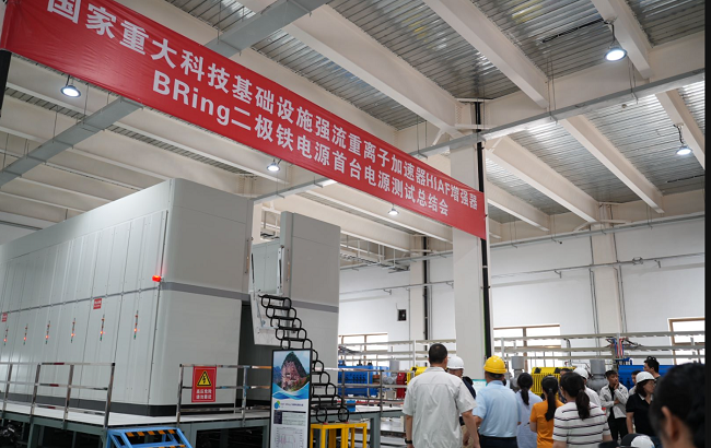 7月7日,國家重大科技基礎(chǔ)設(shè)施強(qiáng)流重離子加速器增強(qiáng)器 BRing 二極鐵電源首臺(tái)暨國家重點(diǎn)研發(fā)計(jì)劃“大科學(xué)裝置前沿研究”非諧振快上升速率磁鐵電源測試總結(jié)會(huì)在甘肅省天水市召開。由中國科學(xué)院近代物理研究所設(shè)計(jì)、天水電氣傳動(dòng)研究所和四川英杰電氣有限公司為主生產(chǎn)的國際首臺(tái)大型非諧振全儲(chǔ)能快循環(huán)脈沖電源通過專家組現(xiàn)場測試。