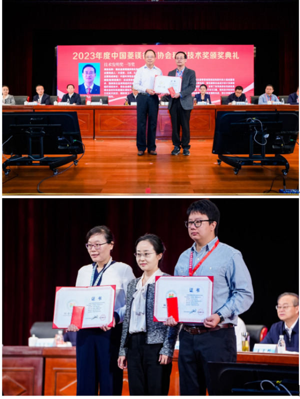 王定邦、吳志堅共同為青海柴循鹽湖產(chǎn)業(yè)研究有限公司揭牌,吳志堅、李穎虹分別為2023年度中國菱鎂協(xié)會科學(xué)技術(shù)獎技術(shù)發(fā)明獎一等獎和青年科技獎獲得者頒發(fā)證書。