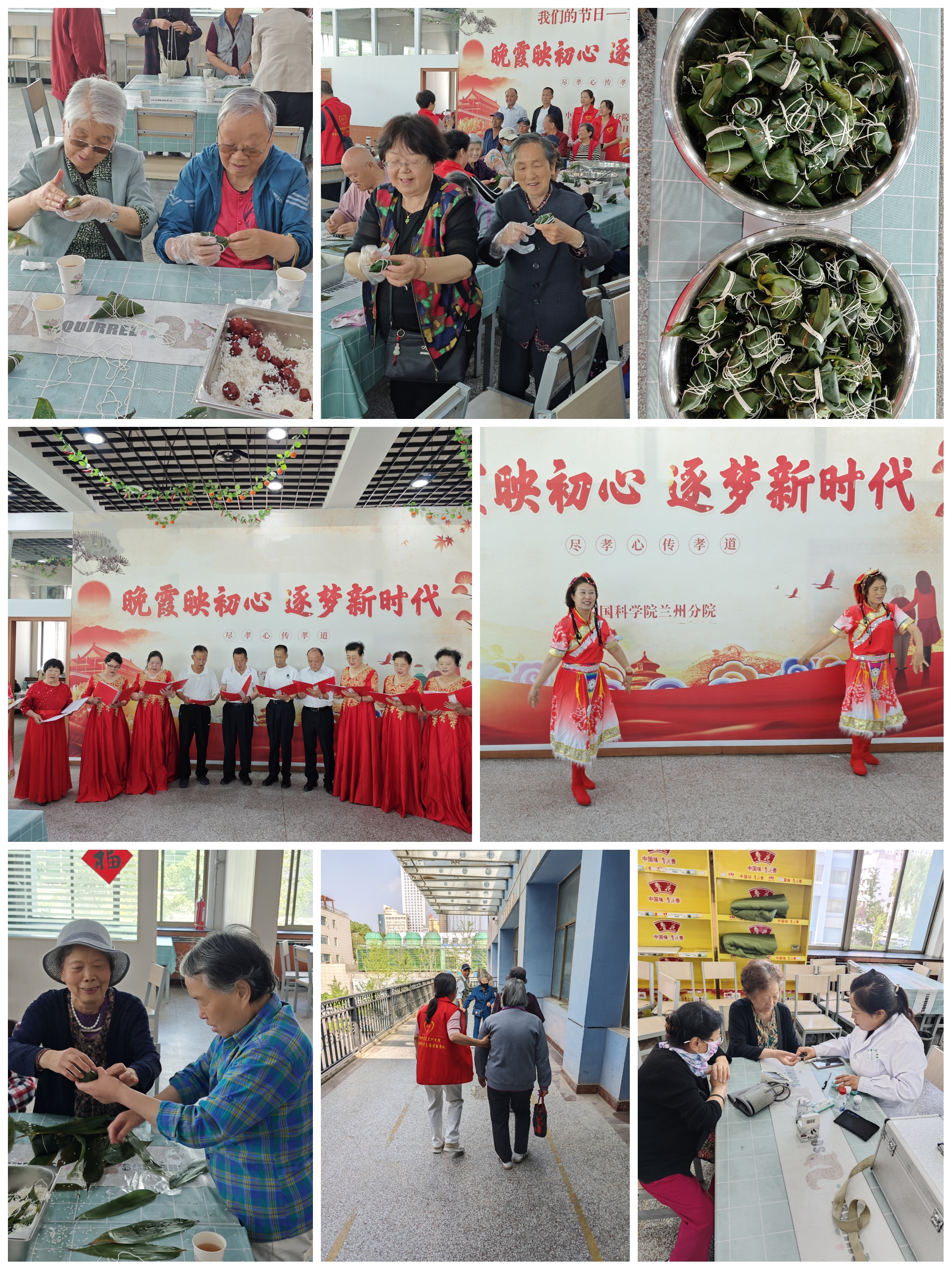 蘭州分院“科蘭銀輝”老年志愿者服務(wù)隊(duì)成員在活動(dòng)中積極幫助年紀(jì)大的老同志上下樓梯、領(lǐng)路帶座、指導(dǎo)老同志包粽子,衛(wèi)生所工作人員為在場(chǎng)老同志及時(shí)測(cè)量血壓血糖,為本次活動(dòng)的順利開(kāi)展提供了重要保障。