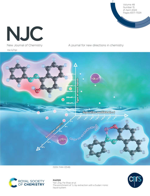 中國科學(xué)院青海鹽湖研究所同位素分離與化學(xué)品精制課題組針對蘇丹Ⅰ(1-苯基偶氮-2-萘酚)萃取富集7Li分離效應(yīng)低問題開展研究。基于離子液體在鋰同位素分離體系中表現(xiàn)出優(yōu)異的協(xié)萃性能,將離子液體引入蘇丹Ⅰ體系中,構(gòu)建蘇丹離子液體(Ⅰ-[HMIm][BF4])萃取體系,極大提高了蘇丹Ⅰ對7Li的分離能力。蘇丹Ⅰ與Li+是1:1進行絡(luò)合,過程中離子液體在跨界面遷移中主要起輔助作用,離子液體陰離子親水性越強,其輔助萃取作用越強,且計算表明離子液體的陰離子極有可能參與了蘇丹Ⅰ與鋰離子的配位。此研究成果在New Journal of Chemistry期刊發(fā)表封面學(xué)術(shù)論文一篇,SCI收錄。