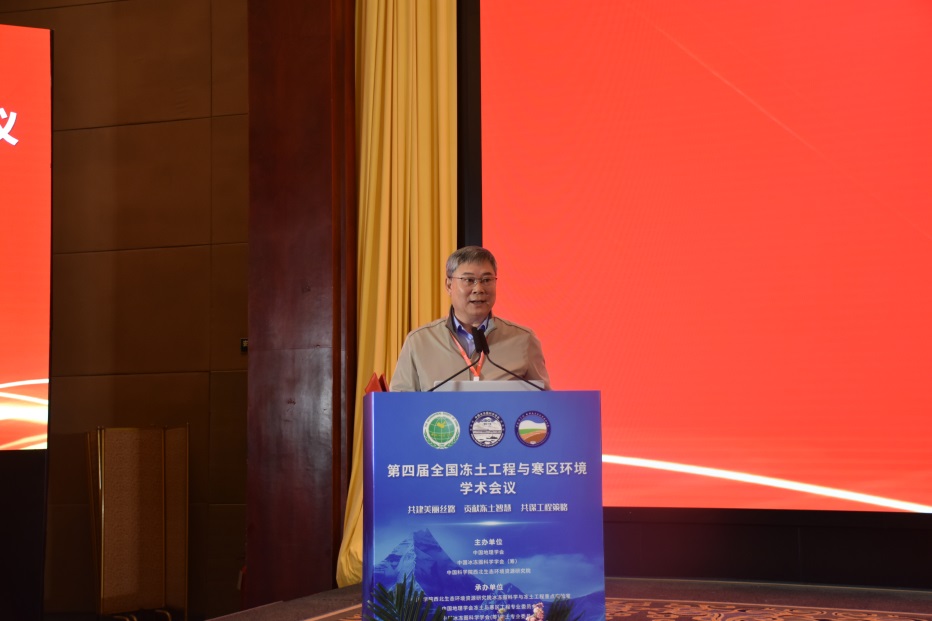 中國科學(xué)院院士、中國地理學(xué)會理事長陳發(fā)虎在致辭中回顧了我國冰川凍土研究歷史,高度評價了我國在凍土工程與寒區(qū)環(huán)境研究領(lǐng)域取得的可喜成績。中國地理學(xué)會副理事長兼秘書長張國友研究員在致辭中強(qiáng)調(diào),冰凍圈科學(xué)與凍土工程重點實驗室長期致力于冰川、凍土、寒區(qū)環(huán)境等方面的研究,為我國寒區(qū)資源開發(fā)、生態(tài)環(huán)境保護(hù)和重大凍土工程建設(shè)作出了重要貢獻(xiàn)。