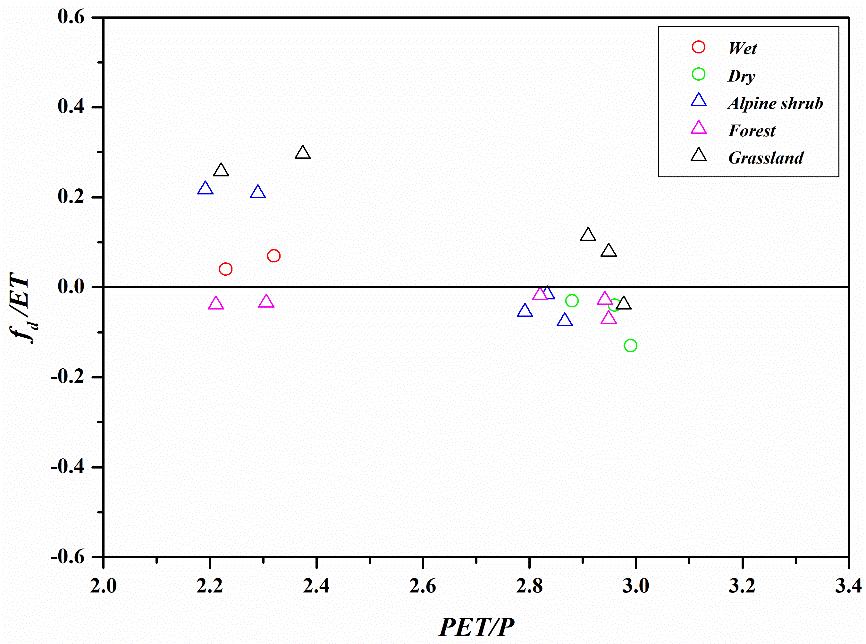 圖3 基巖風(fēng)化層的垂直通量(fd)對(duì)蒸散發(fā)(ET)的貢獻(xiàn)。雨季(2017年、2019年)和旱季(2018年、2020年、2021年)。