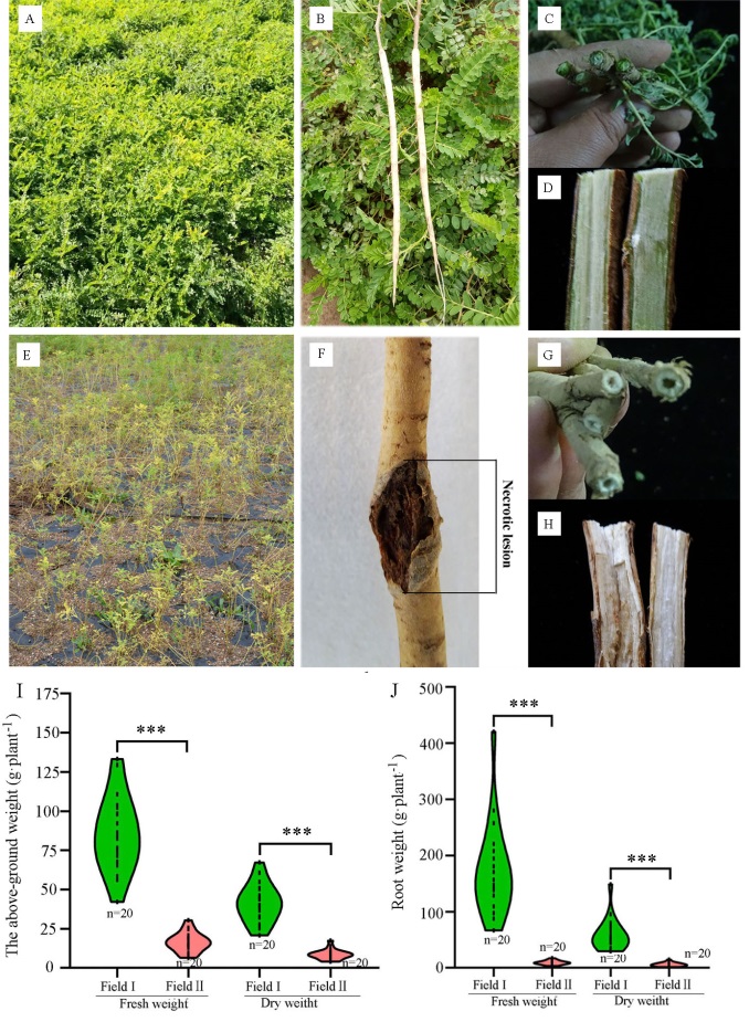 圖1:FieldⅠ和FieldⅡ中生長的蒙古黃芪植物的表型和生物量。