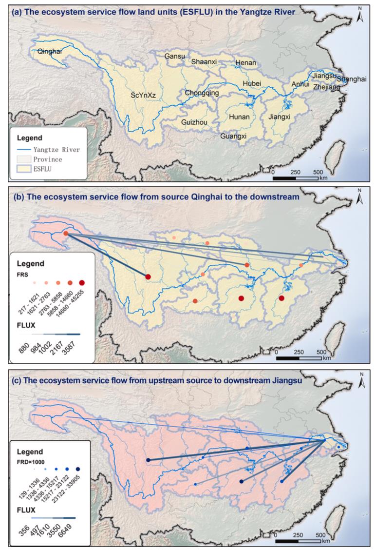FRESF工具箱3號模塊的示例輸出,定量評估了長江流域2020年洪水調(diào)蓄生態(tài)系統(tǒng)服務(wù)流