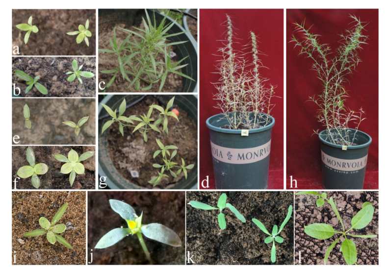 圖1??沙蓬、藜麥、菠菜偶發(fā)三子葉形態(tài)