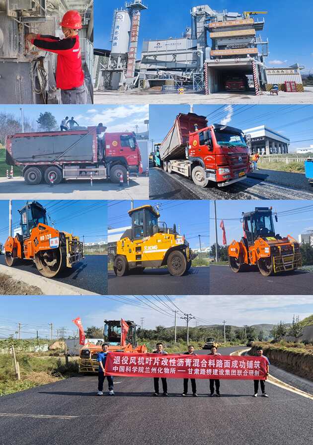 蘭州化物所完成退役風(fēng)機(jī)葉片改性瀝青混合料示范應(yīng)用路面鋪筑