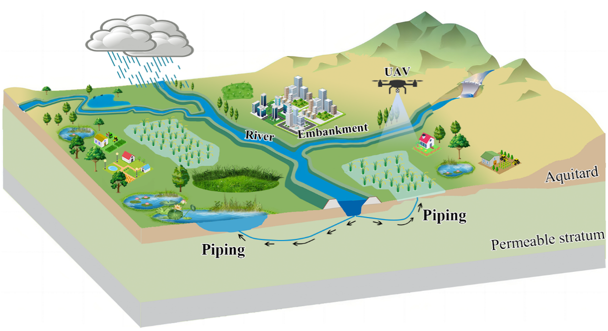 堤防是抵御洪水的關(guān)鍵屏障,但滲漏、管涌等險(xiǎn)情隱患常因地質(zhì)條件復(fù)雜、植被覆蓋或極端天氣難以及時(shí)發(fā)現(xiàn),導(dǎo)致潰堤風(fēng)險(xiǎn)。傳統(tǒng)人工巡檢效率低且存在風(fēng)險(xiǎn),現(xiàn)有地球物理探測(cè)技術(shù)成本高、實(shí)時(shí)性較差。近年來,無人機(jī)與人工智能技術(shù)的結(jié)合為堤防智能化巡檢開辟了新路徑,但對(duì)復(fù)雜自然場(chǎng)景下的適用性仍面臨挑戰(zhàn)。