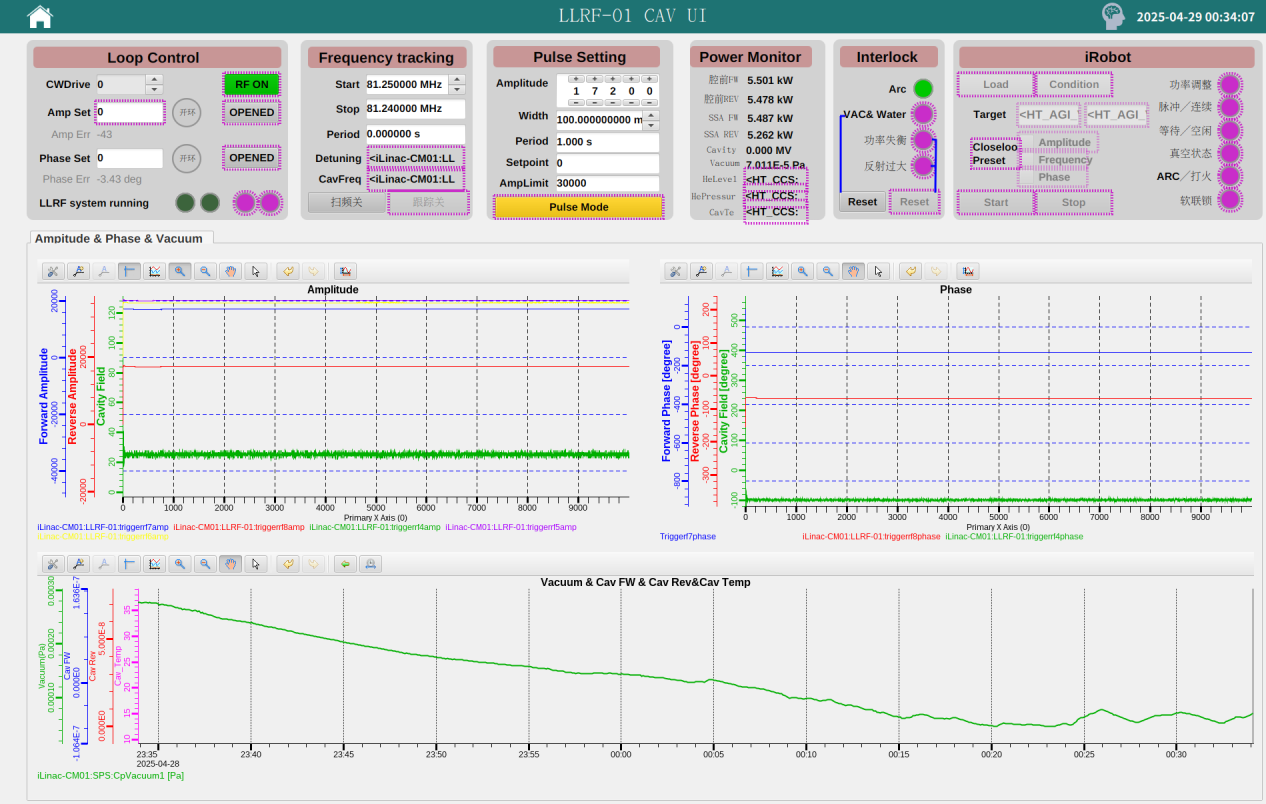 在惠州裝置區(qū)的工程現(xiàn)場,30余名黨員、科研骨干組成的攻堅團隊開展多系統(tǒng)聯(lián)合攻關(guān)。團隊針對QWR007超導段首套模組進行集成性能測試。測試數(shù)據(jù)顯示,在脈沖和連續(xù)波模式下該模組分別實現(xiàn)7kW及4kW高功率加載,各項參數(shù)和關(guān)鍵指標全面達標。這一成果驗證了系統(tǒng)集成功能的可靠性,為日后項目建設和束流調(diào)試奠定關(guān)鍵技術(shù)基礎。