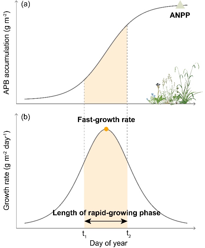 氣候變化預(yù)計將在未來數(shù)十年持續(xù)加劇,可能對反映生態(tài)系統(tǒng)功能及固碳能力的重要指標(biāo)-地上凈初級生產(chǎn)力(ANPP)產(chǎn)生重要影響。然而,目前關(guān)于十年尺度以上的長期降溫效應(yīng)研究仍較為匱乏,且溫度變化通過物候級聯(lián)影響植物生長與ANPP的內(nèi)在機制尚不清晰,導(dǎo)致與降溫相關(guān)的長期氣候變動效應(yīng)仍需系統(tǒng)探究。