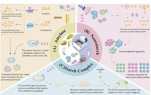 近日,中國科學院蘭州化學物理研究所天然藥物與化學測量研究中心食品化學與安全檢測團隊發(fā)表了關(guān)于抑制淀粉回生方面的綜述文章,系統(tǒng)總結(jié)了超聲波輔助淀粉改性領(lǐng)域的最新研究進展,為綠色、高效的淀粉功能化改性技術(shù)提供了重要參考。該論文深入探討了超聲波參數(shù)優(yōu)化、結(jié)構(gòu)-性能關(guān)系解析及協(xié)同改性策略,展現(xiàn)了超聲波技術(shù)在淀粉改性領(lǐng)域的廣闊前景。