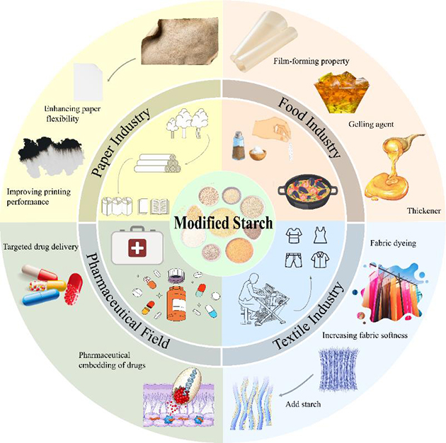 圖3.淀粉改性材料作為工業(yè)領(lǐng)域關(guān)鍵原材料的應用