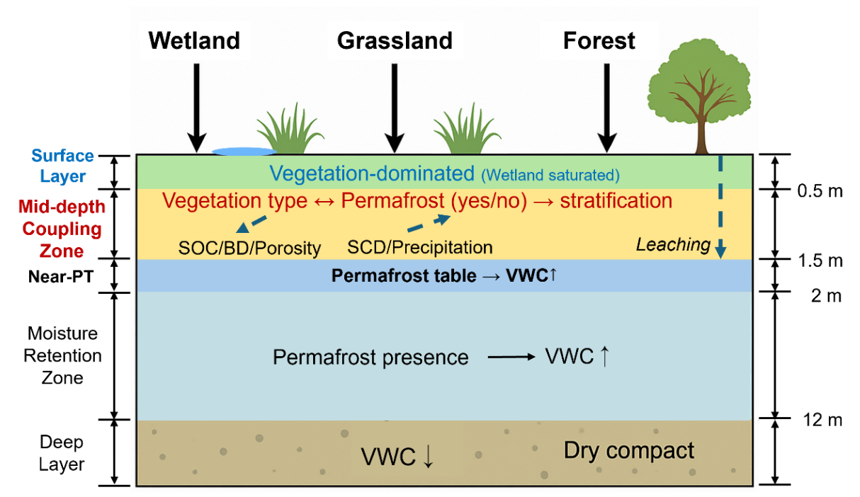 邊緣多年凍土區(qū)水分垂向耦合機(jī)制概念框架圖