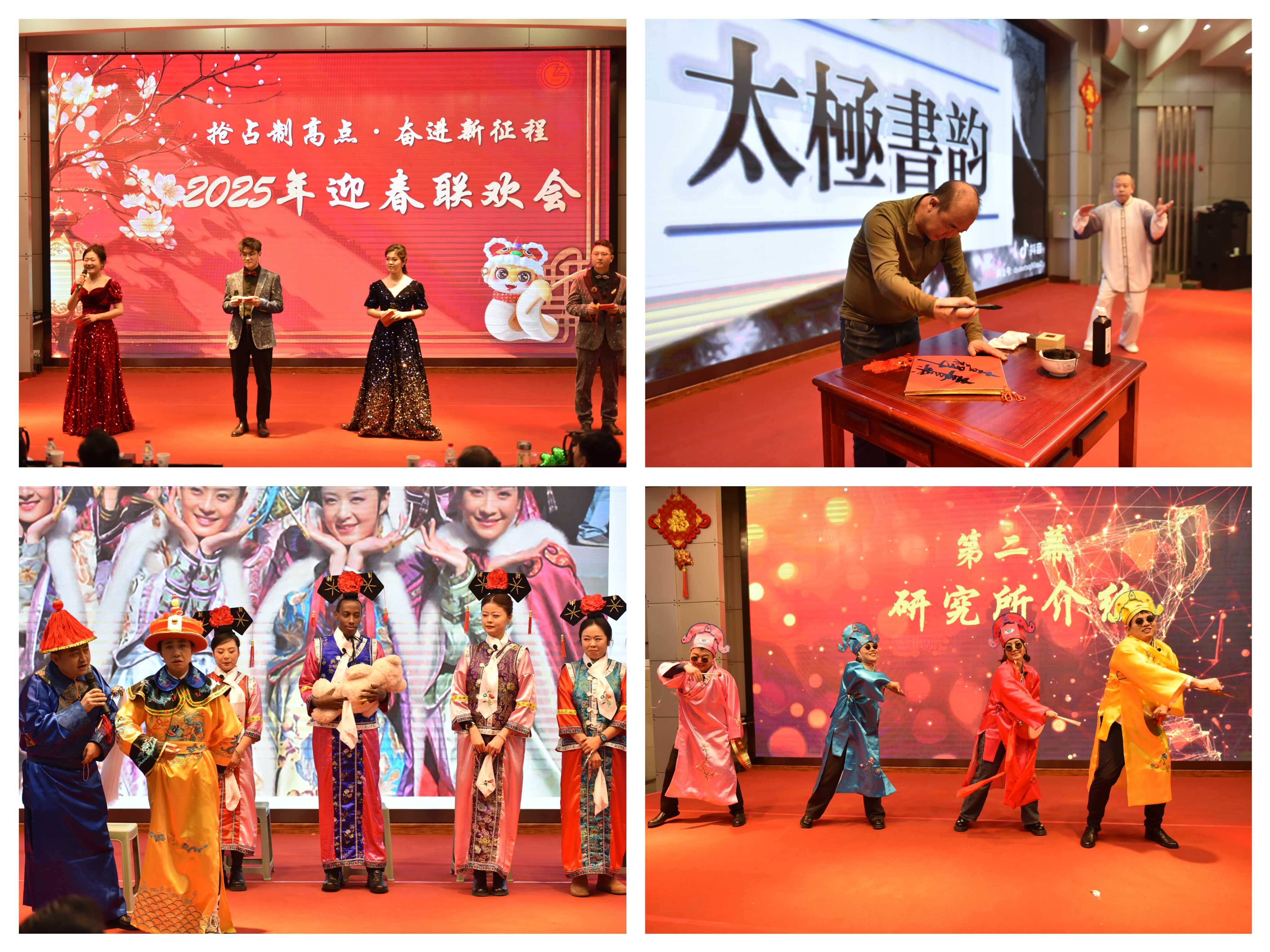 聯(lián)歡會在舞蹈《張燈結(jié)彩》歡快的節(jié)奏中拉開序幕。所領(lǐng)導(dǎo)班子全體成員共同朗誦的詩歌《勇?lián)厝?科技報國》高亢激昂,深情回顧了研究所六十余年奮斗歷程與輝煌成就,共同擘畫了未來發(fā)展的美好藍圖,充分展現(xiàn)了蘭州化物所人再赴新征程的百倍信心。退休老同志們表演的合唱《走向復(fù)興》《革命人永遠是年輕》整齊嘹亮,表達了老一輩科研工作者扎根西部、無怨無悔,開拓奮進、科技報國的壯志情懷。小品《后宮甄嬛·科研傳》、三句半《勁在科研》則以幽默詼諧的方式再現(xiàn)了科研工作中的樂趣與故事。合唱《如愿》表達出對祖國的美好祝愿。書法與太極拳表演《太極書韻》剛?cè)岵?、行云流水,展示了中華文化的魅力。舞蹈與古箏演奏《漁舟唱晚》展現(xiàn)了科苑少年的自信與風(fēng)采。獨唱《今天》《卓瑪》歌聲悠揚婉轉(zhuǎn),贏得現(xiàn)場陣陣掌聲,詩朗誦《凹凸棒石頌》抒發(fā)了青年科技工作者的激情與信念?!稛o名的人》《悲傷蛙不悲傷》《唱響世界,奔跑少年》等舞蹈和歌曲串燒節(jié)目充分展現(xiàn)出廣大研究生青春昂揚、蓬勃向上的絢麗風(fēng)采。一個個精彩的節(jié)目將聯(lián)歡會氣氛一次次推向高潮,中間穿插的游戲和抽獎環(huán)節(jié),更是讓全場觀眾體驗到層出不窮的驚喜。