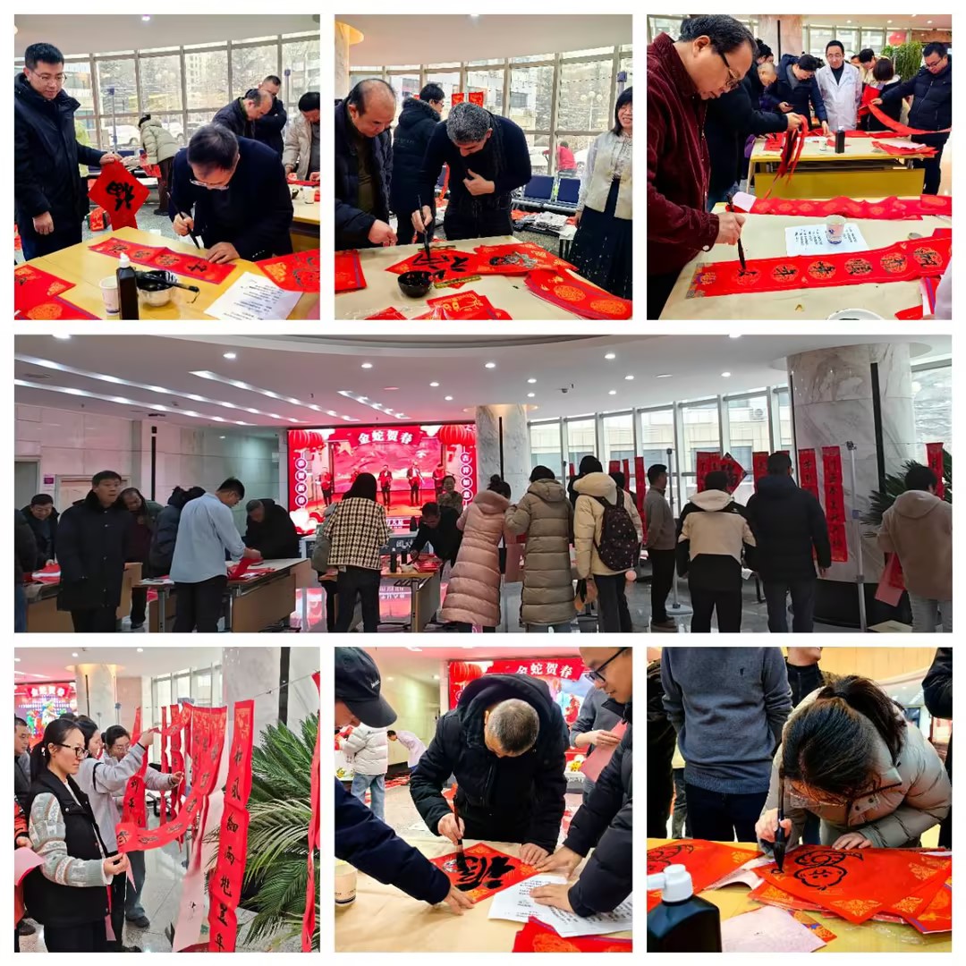 活動(dòng)現(xiàn)場(chǎng),墨香彌漫、紅紙翻飛,書法家現(xiàn)場(chǎng)潑墨揮毫、各顯身手,楷書、行書、隸書等各式字體躍然紙上,一幅幅寓意吉祥的春聯(lián),一張張喜氣盈盈的大紅“福”字,洋溢著對(duì)幸福生活的熱切期盼和美好憧憬。職工們紛紛參與其中,在一旁添墨、壓帖、晾春聯(lián),爭(zhēng)相領(lǐng)取自己滿意的春聯(lián)佳對(duì)。