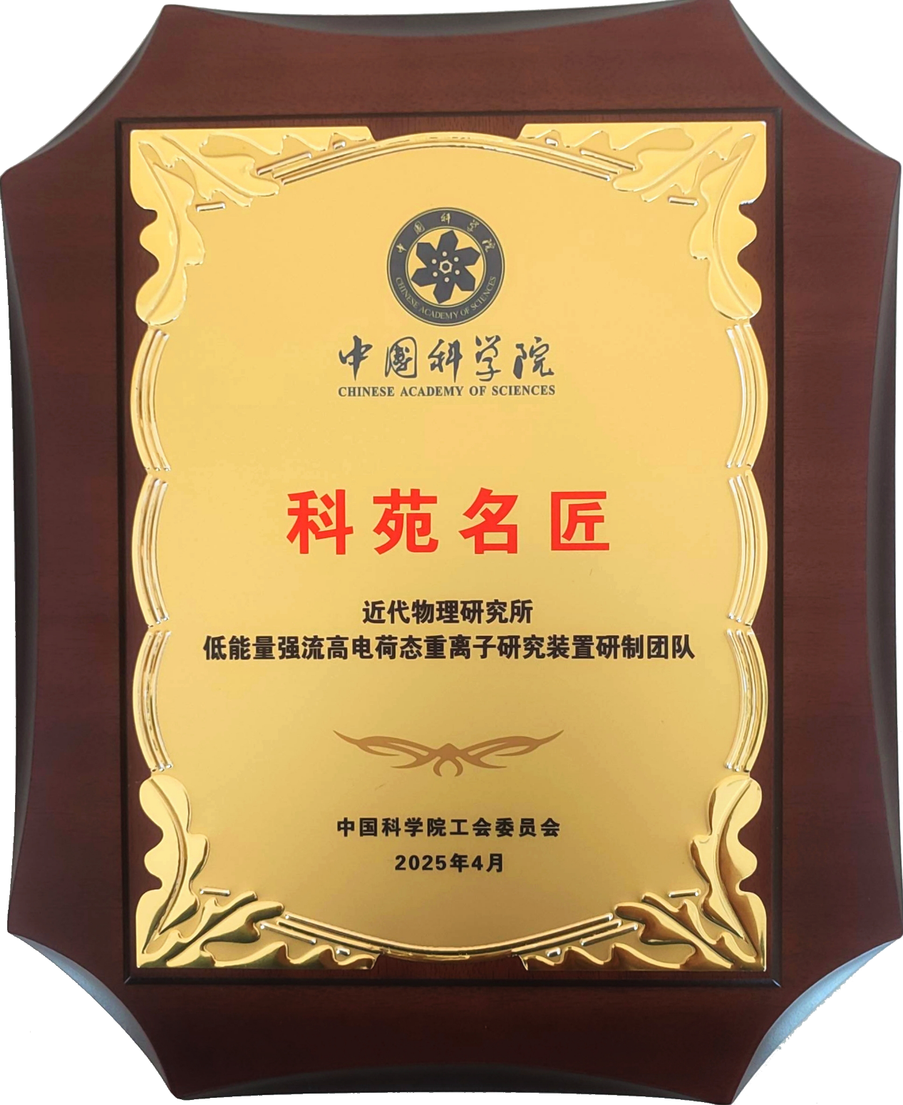 近代物理所低能量強流高電荷態(tài)重離子研究裝置研制團(tuán)隊榮獲中國科學(xué)院第六屆“科苑名匠”稱號