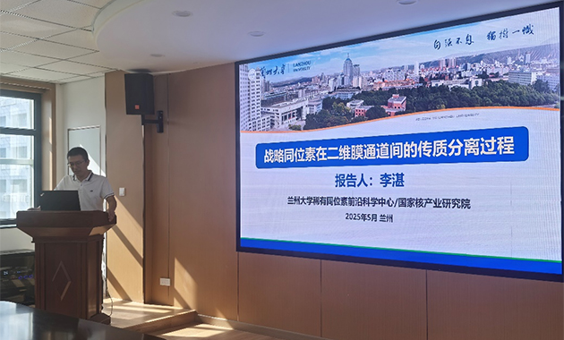 李湛作了題為“戰(zhàn)略同位素在二維膜通道間的傳質(zhì)分離過程”的報(bào)告。介紹了同位素分離的重要性、應(yīng)用需求和分離現(xiàn)狀,創(chuàng)新性地發(fā)展了系列綠色環(huán)保、低能耗、可連續(xù)分離的膜分離技術(shù),他們通過在二維納米片表面及二維層狀膜的層間原位限域引入活性位點(diǎn),利用活性位點(diǎn)的同位素效應(yīng),結(jié)合二維層狀膜的超長傳質(zhì)通道,利用擴(kuò)散速率的差異進(jìn)行高效氫同位素分離、鋰離子與鋰同位素分離、醫(yī)用同位素的高效分離以及鹵水中鈾資源的高效分離,闡明了復(fù)雜體系中目標(biāo)離子、分子、同位素在二維層間多功能通道的識(shí)別與篩分機(jī)制。
