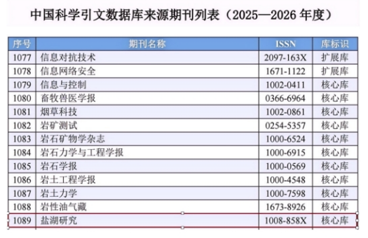 《鹽湖研究》入選CSCD來(lái)源期刊核心庫(kù)