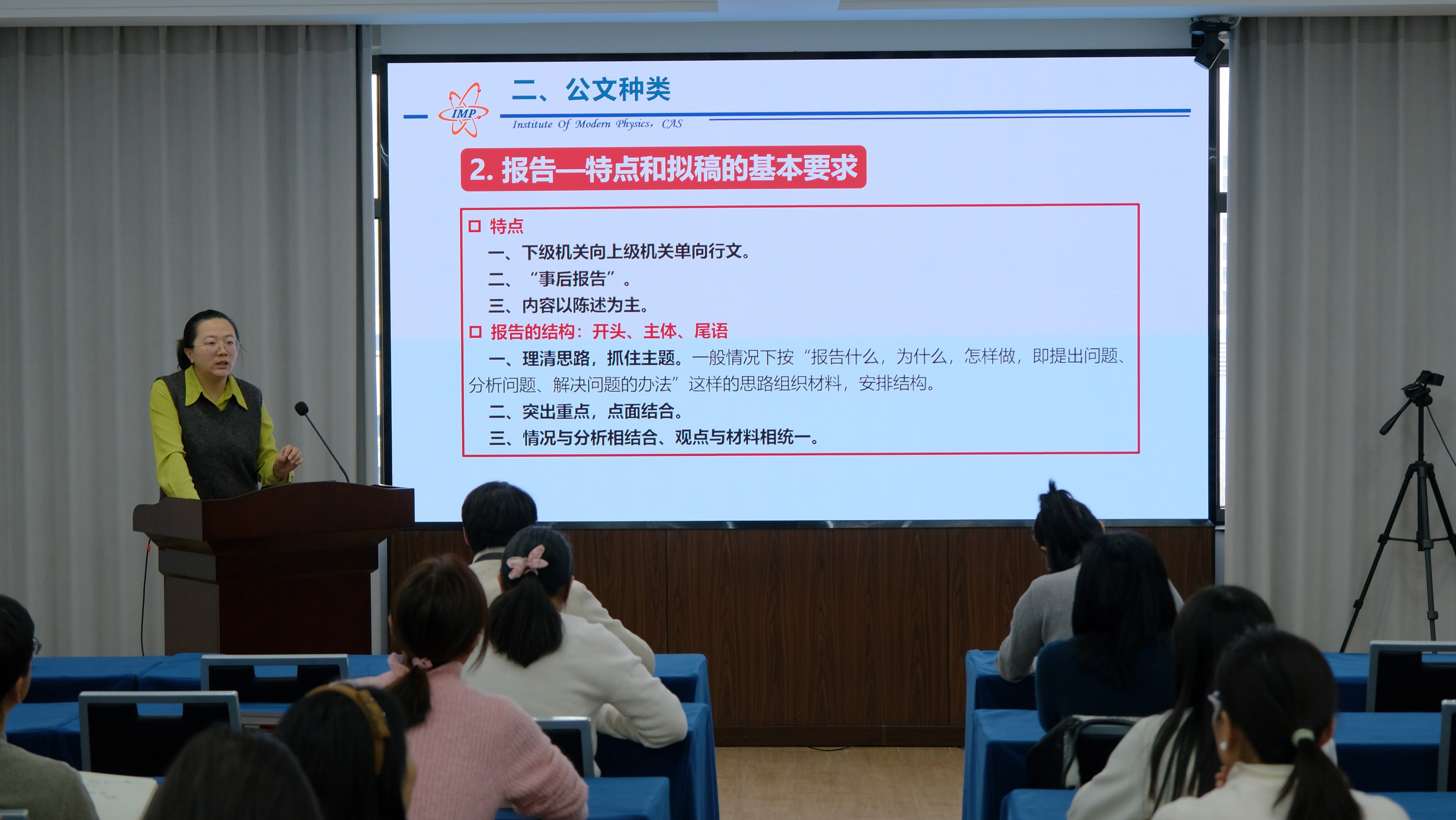 近日,為進(jìn)一步提升研究所公文處理工作的標(biāo)準(zhǔn)化與規(guī)范化建設(shè),全面提升公文寫作與管理水平,中國科學(xué)院近代物理研究所組織舉辦了公文處理專題培訓(xùn)。
