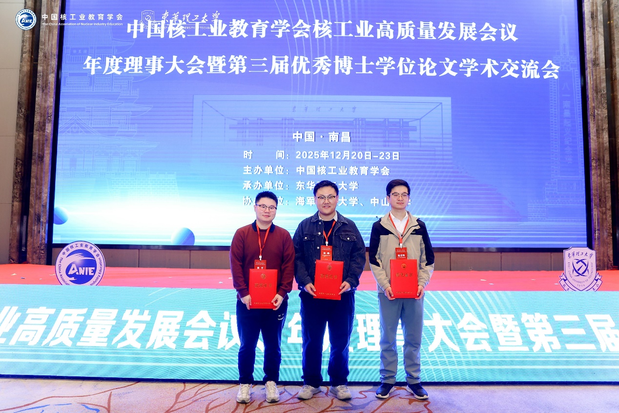會議公布了中國核工業(yè)教育學(xué)會第三屆全國優(yōu)秀博士學(xué)位論文獲獎結(jié)果,2025屆博士生寇維的學(xué)位論文《核子內(nèi)部結(jié)構(gòu)和QCD非微擾性質(zhì)若干研究》榮獲優(yōu)秀博士學(xué)位論文二等獎,2025屆博士生趙世偉的學(xué)位論文《SiC功率器件結(jié)構(gòu)對其單粒子效應(yīng)的影響機理研究》、2024屆博士生成釗意的學(xué)位論文《面向核能的FeCrV系中熵合金熱學(xué)、力學(xué)及抗輻照性能研究》榮獲優(yōu)秀博士學(xué)位論文三等獎,陳旭榮研究員、劉杰研究員和孫建榮研究員獲得優(yōu)秀指導(dǎo)教師稱號。此外,近代物理所與四川大學(xué)聯(lián)合培養(yǎng)博士生黃宇的論文榮獲優(yōu)秀博士學(xué)位論文一等獎。