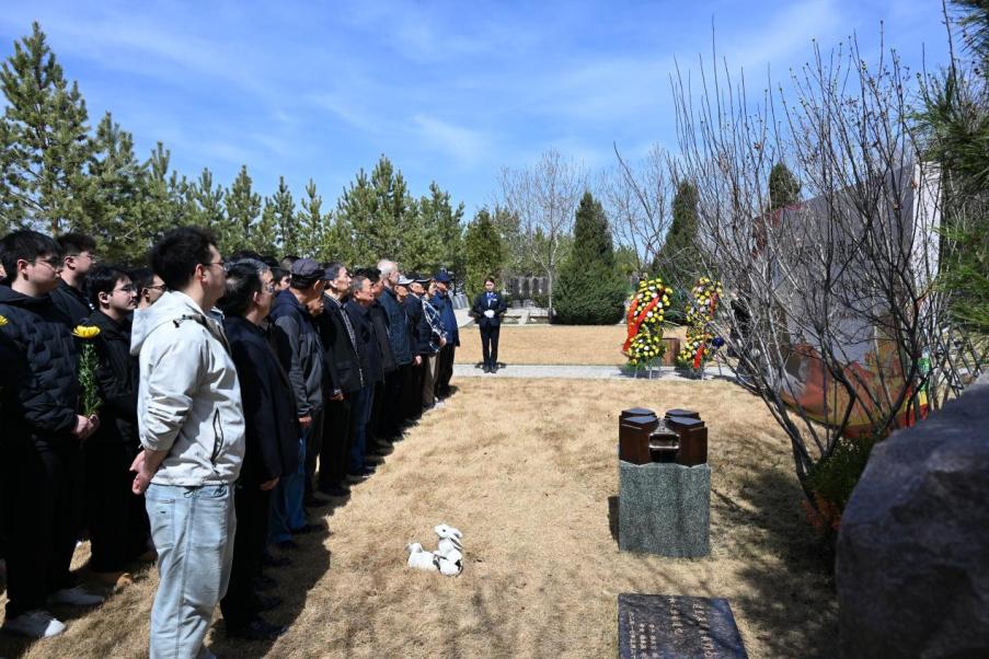 下午,研究生及職工代表前往墓園祭掃,為楊先生夫婦塑像獻(xiàn)花。退休黨員王琦研究員分享了楊先生在科研道路上攻堅(jiān)克難、令人敬佩的故事。研究生們紛紛表示,將以科學(xué)家精神為燈塔,不畏艱難,敢于向重大科技難關(guān)發(fā)起沖鋒,為祖國(guó)的核事業(yè)點(diǎn)燃青春的引擎。
