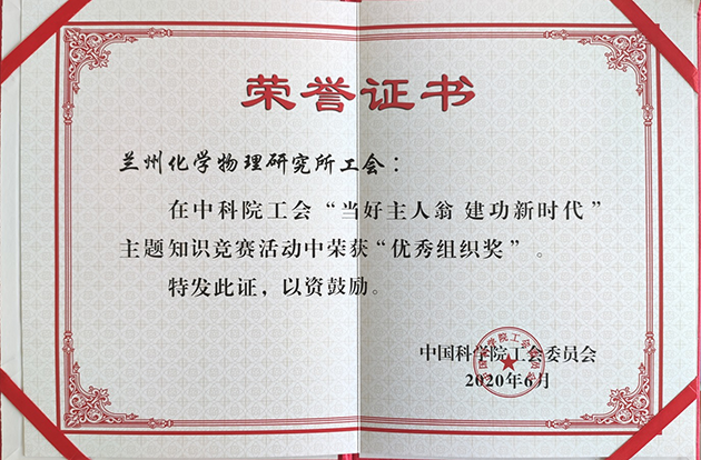 蘭州化物所榮獲2020年中科院工會(huì)知識(shí)競賽優(yōu)秀組織獎(jiǎng)