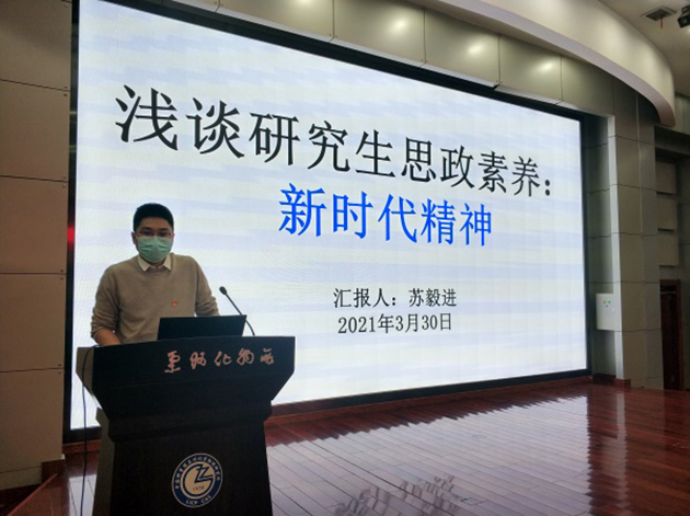 蘇毅進研究員作了題為“淺談研究生思政素養(yǎng):新時代精神”的報告,介紹了科學家精神,分享了先進典型案例,號召全體研究生同學用習近平新時代中國特色社會主義思想武裝頭腦,增強“四個意識”,堅定“四個自信”,堅決做到“兩個維護”,為祖國建設發(fā)展貢獻自己最大的力量。