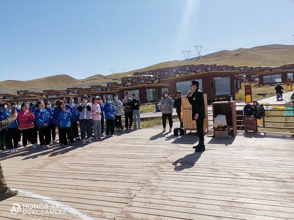 在為期兩天的行程中,同學(xué)們先后參觀了青海湖和海北原子城紀(jì)念館,在老師的指導(dǎo)下學(xué)習(xí)如何樹立自信心,增強(qiáng)合作意識,了解與青藏高原相關(guān)的地質(zhì)地理知識,感受兩彈一星老科學(xué)家們無私奉獻(xiàn)和創(chuàng)新報國的精神等。此外,大家還分組團(tuán)隊合作自己設(shè)計團(tuán)隊游戲,展示個人才藝,氣氛融洽而熱烈。尤其是在展示個人才藝環(huán)節(jié)還發(fā)生了一個有趣而暖心的小插曲,同學(xué)們的歌舞表演不僅吸引了周圍游客的關(guān)注,也引起了一位從四川九寨溝遠(yuǎn)道而來的藏族歌手的注意,這位歌手被同學(xué)們的表演所感染,用他特有的嗓音欣然為同學(xué)們演唱了他自己原創(chuàng)的歌曲,并鼓勵同學(xué)們努力學(xué)習(xí),成為對國家對社會有用的人才。