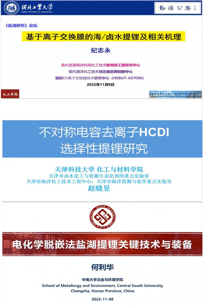 論壇圍繞“鹽湖鹵水提鋰”這一中心議題,進(jìn)行了學(xué)術(shù)報(bào)告及廣泛交流。論壇包括3個(gè)邀請(qǐng)報(bào)告,邀請(qǐng)河北工業(yè)大學(xué)紀(jì)志永教授、天津科技大學(xué)趙曉昱副研究員、中南大學(xué)何利華副教授分別圍繞離子交換膜提鋰、不對(duì)稱電容去離子技術(shù)選擇性提鋰、電化學(xué)脫嵌法提鋰等主題作了深度報(bào)告與交流。