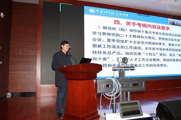 蘭州分院分黨組成員、副院長趙培慶就西北研究院領(lǐng)導班子與領(lǐng)導人員2023年度考核工作做了說明。