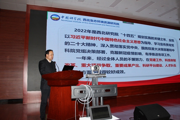 馮起指出,2022年是西北研究院“十四五”規(guī)劃實施的關(guān)鍵之年,全院以習近平新時代中國特色社會主義思想為指導,學習宣傳貫徹黨的二十大精神,深入貫徹落實黨中央、國務院重大決策部署和中科院黨組決策部署,克服新冠疫情影響,有序推進各項工作。在西北研究院全體人員的共同努力下,體制機制改革、重大項目爭取、重要成果產(chǎn)出、科研平臺建設、人才隊伍建設、創(chuàng)新文化建設等各方面均取得顯著成效。