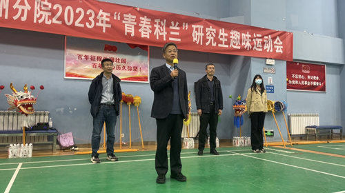 為認(rèn)真貫徹落實(shí)院及國科大關(guān)于做好學(xué)生思政工作的部署安排,切實(shí)提升分院系統(tǒng)校園文化建設(shè),3月30日下午,蘭州分院在蘭州市體育公園運(yùn)動(dòng)館舉辦了2023年“青春科蘭”研究生趣味運(yùn)動(dòng)會(huì)。蘭州分院分黨組副書記陳改學(xué)出席活動(dòng)并講話。