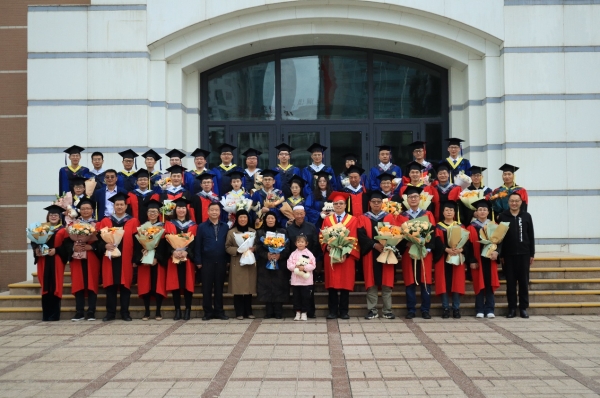 會上,王建萍宣讀了學位授予決定,畢業(yè)生們依次上臺,學位評定委員會主席吳志堅對每位畢業(yè)生扶正流蘇、頒發(fā)紀念品并合影留念。