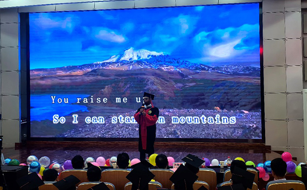 學生代表演唱了歌曲“和你一樣”“You Raise Me Up”?“我相信”,為畢業(yè)生送上祝福。