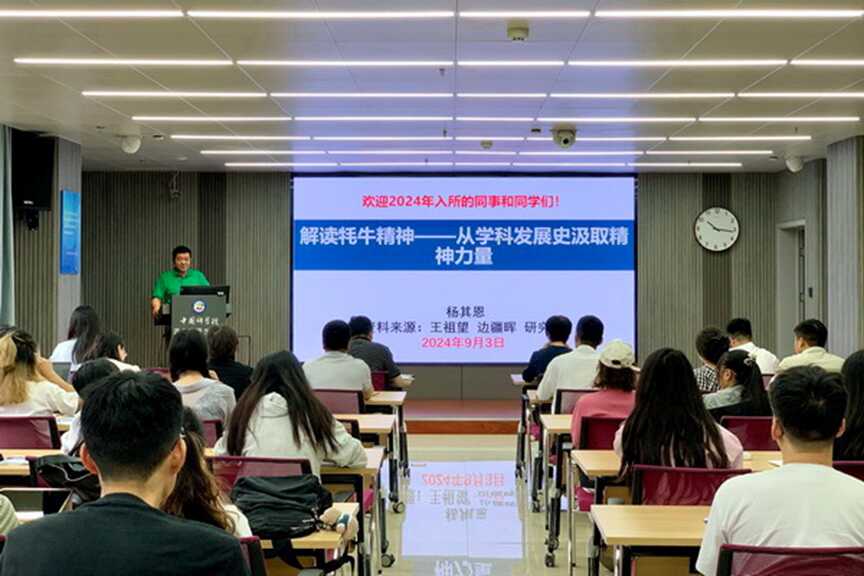 楊其恩作了“解讀牦牛精神——從學(xué)科發(fā)展史汲取精神力量”專題報告,報告從回顧研究所的發(fā)展歷程為切入點(diǎn),向大家講述了“牦牛精神”蘊(yùn)含的深刻意義和背后歷經(jīng)曲折、卓越堅(jiān)守、不計(jì)報酬、但求貢獻(xiàn)的過往,希望作為“國家隊(duì)”、“國家人”的新生力量,大家能夠保持真誠與謙卑,抱利他之心、行利他之事,能夠心系“國家事”、肩扛“國家責(zé)”,面向國家需求、結(jié)合個人興趣,承先生前輩之創(chuàng)造、開科研范式變革之新局,做“牦牛精神”忠實(shí)地踐行者。