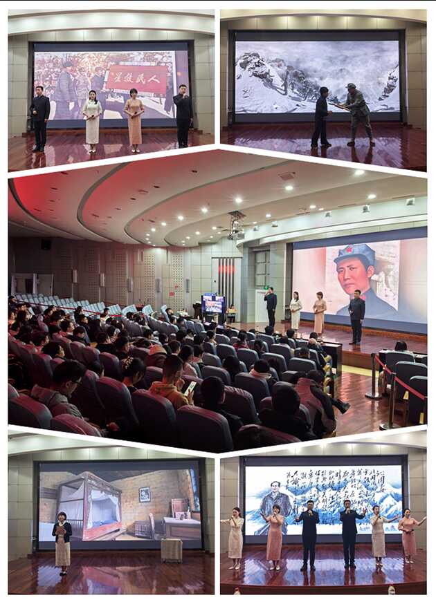 報(bào)告會(huì)邀請(qǐng)了甘肅高臺(tái)干部學(xué)院6名老師作了題為《品讀主席詩詞?汲取奮進(jìn)力量》的情景黨課,黨課以毛澤東詩詞為創(chuàng)作主線,綜合運(yùn)用背景講述、情景表演、詩詞誦讀、旁白解說等形式,結(jié)合歷史背景和感人革命故事,分為“道路的力量”“信仰的力量”“真情的力量”“人民的力量”四個(gè)篇章,用詩詞話黨史,生動(dòng)再現(xiàn)中國共產(chǎn)黨領(lǐng)導(dǎo)全國各族人民救亡圖存和勵(lì)精圖治的價(jià)值取向與使命擔(dān)當(dāng),帶領(lǐng)在場研究生重溫崢嶸歲月,賡續(xù)中國共產(chǎn)黨人精神血脈。