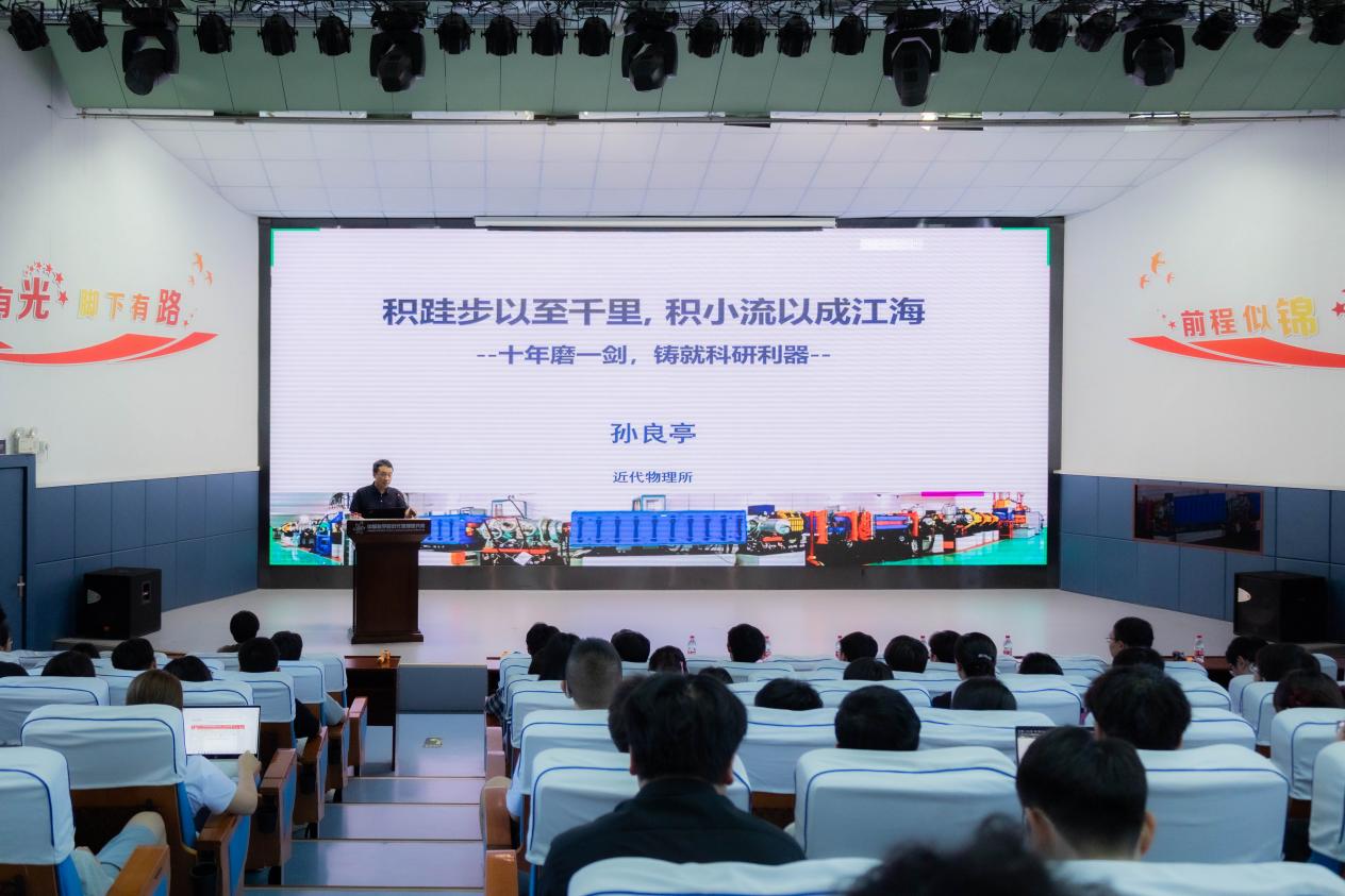 為深入貫徹落實(shí)習(xí)近平總書(shū)記關(guān)于弘揚(yáng)科學(xué)家精神和加強(qiáng)作風(fēng)學(xué)風(fēng)建設(shè)工作的重要指示精神,5月28日,中國(guó)科學(xué)院近代物理研究所開(kāi)展“科學(xué)道德與學(xué)風(fēng)建設(shè)”主題日活動(dòng),邀請(qǐng)近代物理所黨委委員、低能粒子束技術(shù)中心主任孫良亭研究員作《積跬步以至千里,積小流以成江?!昴ヒ粍ΓT就科研利器》主題報(bào)告。此次活動(dòng)共100余位研究生參加,近代物理所紀(jì)委書(shū)記宋華龍出席,教育處副處長(zhǎng)魏巍主持。